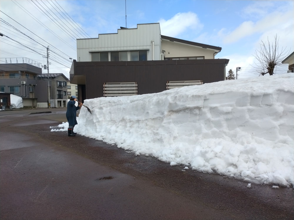 当町の様子 最新情報 2026.03.05 「桃の節句」も過ぎ、豪雪地帯の当町も一歩・一歩と遅い春に近づいて来ました。毎朝の一番の「除雪作業」も無くなり、少し「じょんのび」になった当町の人々です。でも完全消雪迄、もう少しかかりそうです。 ↑ ほらっ! 「嘉六」の周辺は雪国じゃぁないみたいに「雪」が無いでしょ。 ↑ 雪の下の畑に生育している「冬菜」を食べたくて雪消しをしている、近所のおばちゃん。 8/3/5